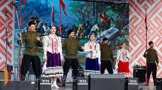 Дать старт праздничной программе выпало Воронежскому русскому народному хору им. Массалитинова, а далее – концерт продолжили коллективы из Луганской и Донецкой Народных Республик – «Раздолье» и «Русский акцент» – это коллективы из тех регионов, которые вошли в Содружество «Донбасс».