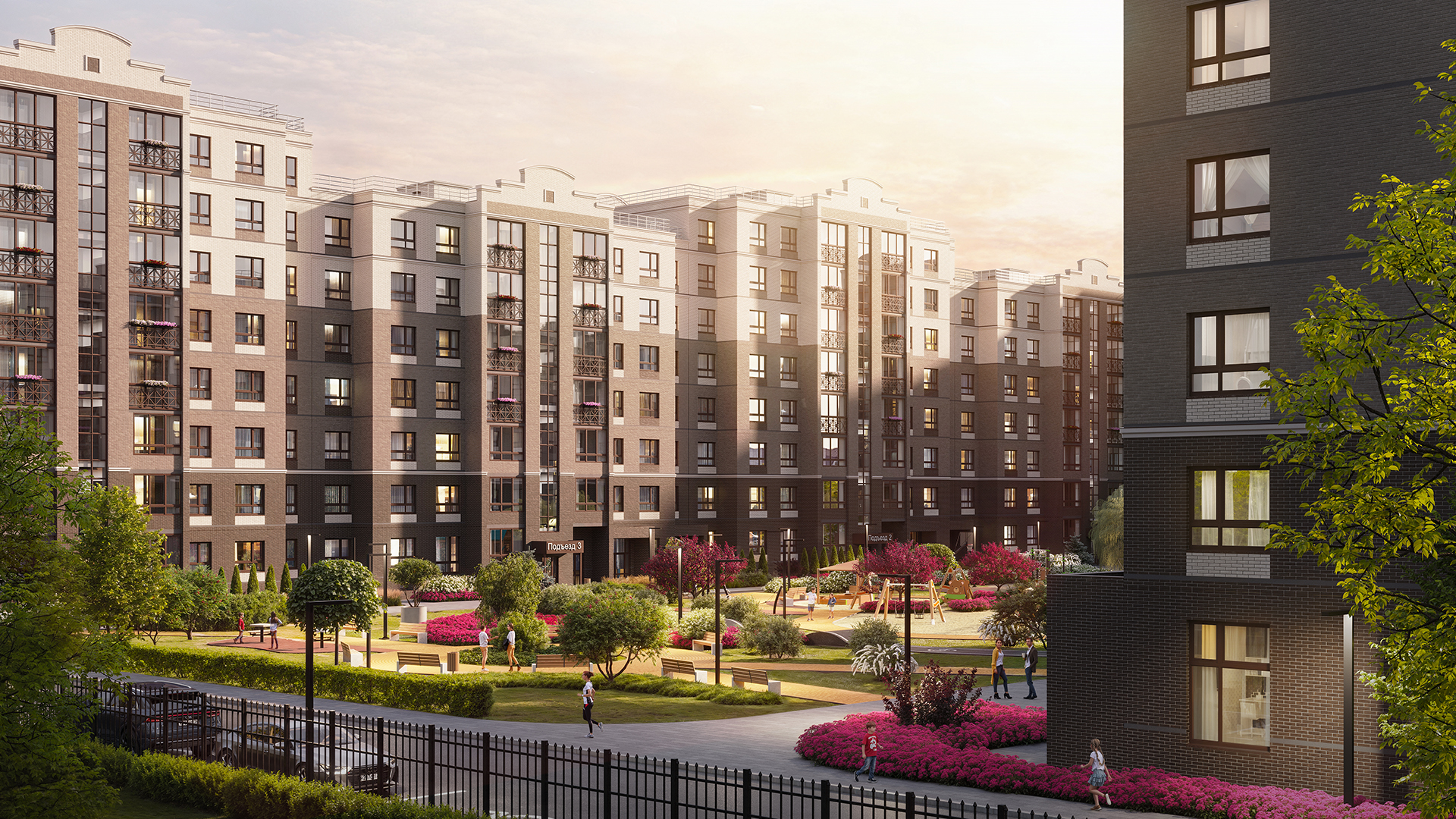 • Благоустроенные дворы без машин.